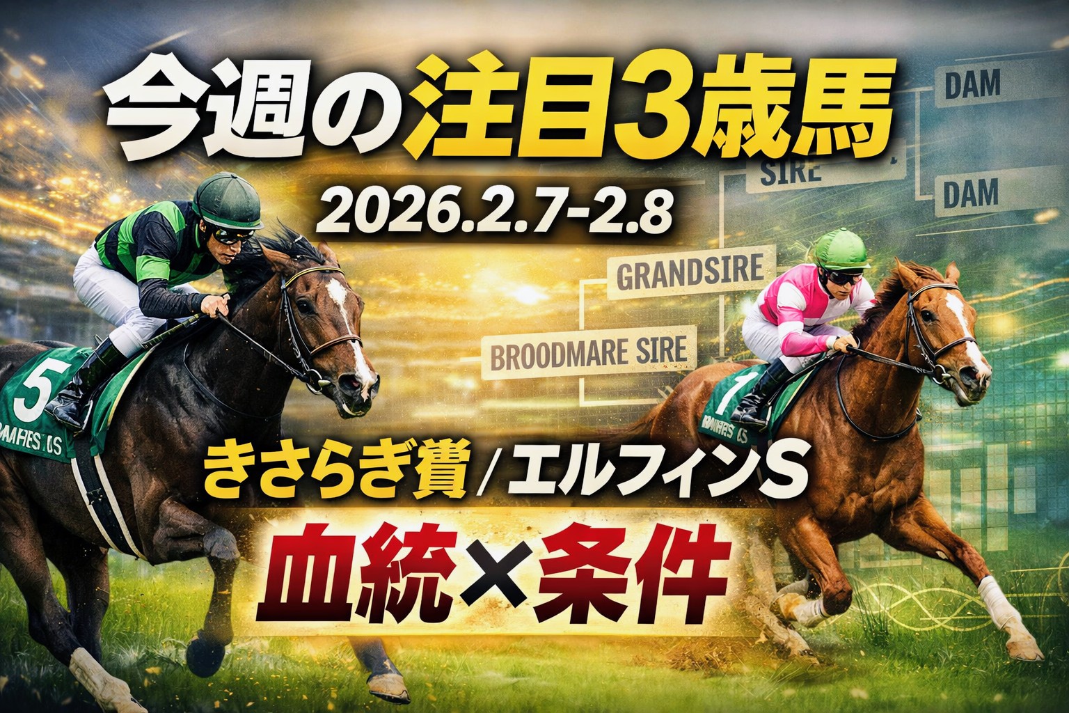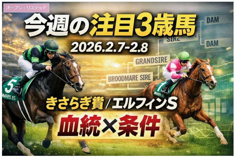 競馬 G3エルフィンステークスきさらぎ賞予想京都競馬東京競馬 【今週の注目3歳馬】きさらぎ賞&エルフィンSほか|良血×血統で“次の主役候補 2026.02.07 【今週の注目3歳馬】きさらぎ賞&エルフィンSほか|良血×血統で“次の主役候補今週出走する注目3歳馬をレース別に特集。きさらぎ賞(G3)・エルフィンS(L)・春菜賞(1勝)・新馬戦の良血/素質馬を、血統×条件の視点で短く分かりやすく整理。